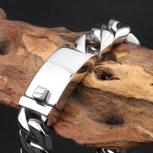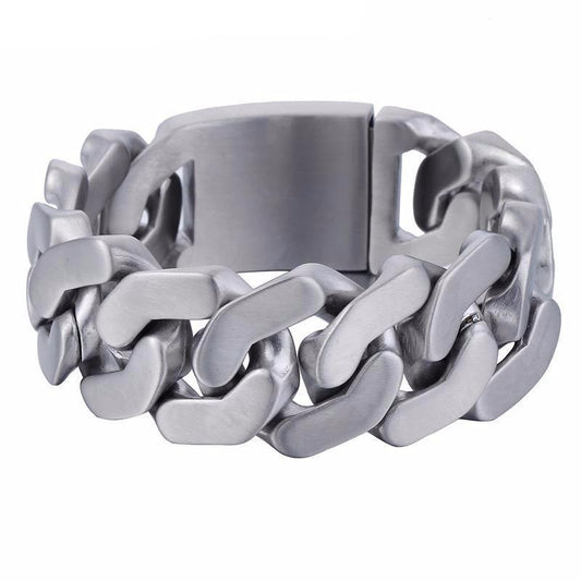 Stainless Steel Heavy Thick Chain Bracelet, Width 1 in, Thickness 0.2 in, Silver