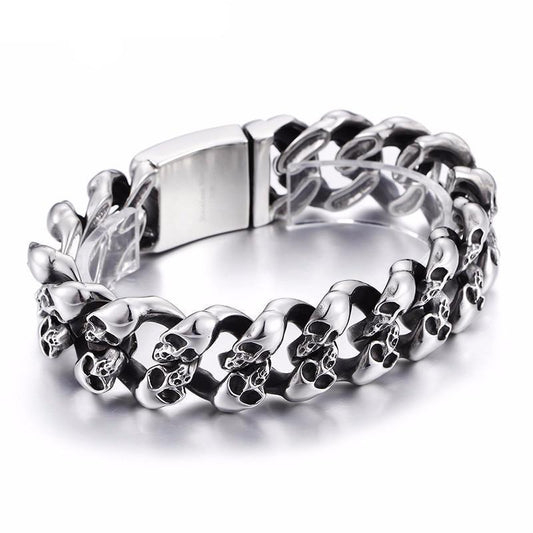 Stainless Steel Men's Punk Skull Bracelet, Silver