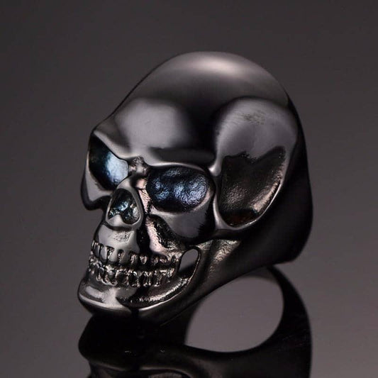Stainless Steel Premium Skull Biker Ring, Black