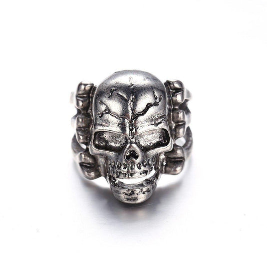 Zinc Alloy Gothic Skull & Bones Biker Ring, Silver Tone