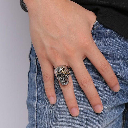 Stainless Steel Punk Rock Silver Skull & Gold Scorpion Ring