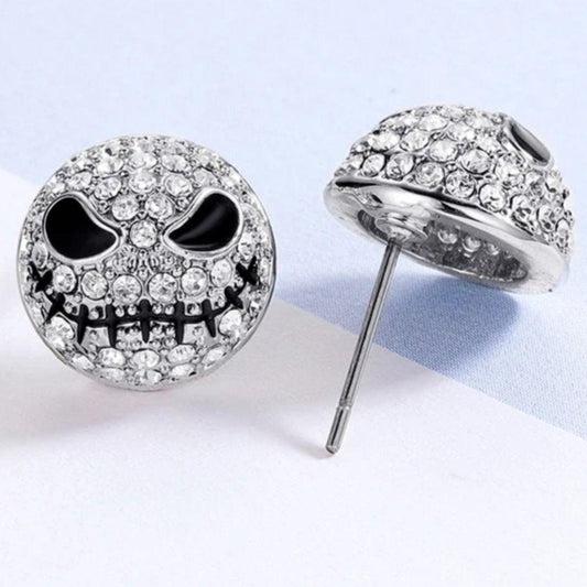 Crystal Skull Stud Earrings, Silver Color, 0.5 In