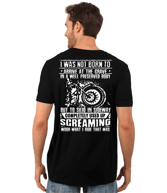 I Was Not Born To Arrive At The Grave In A Well Preserved Body T-Shirt, Unisex, Cotton, Black w/ White Print