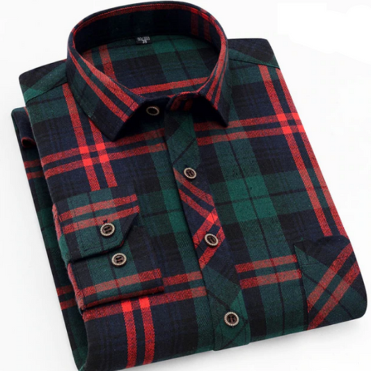 Men's Plaid Button Down Flannel Shirt, Red/Green