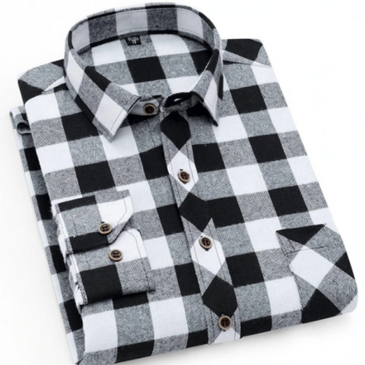 Men's Plaid Button Down Flannel Shirt, White/Black Checkered