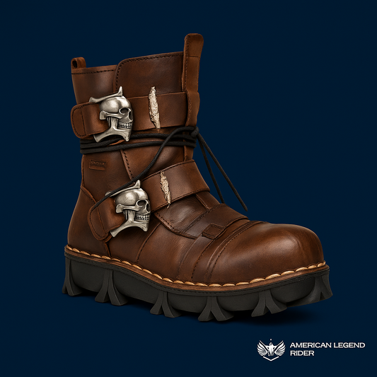 Handmade Skull Leather Boots + Free Leg Bag Bundle