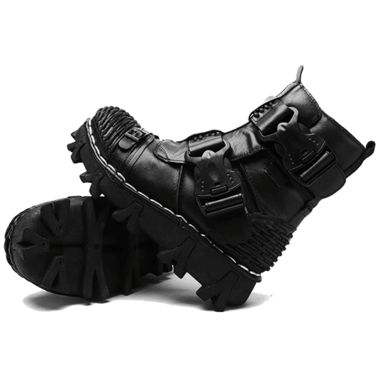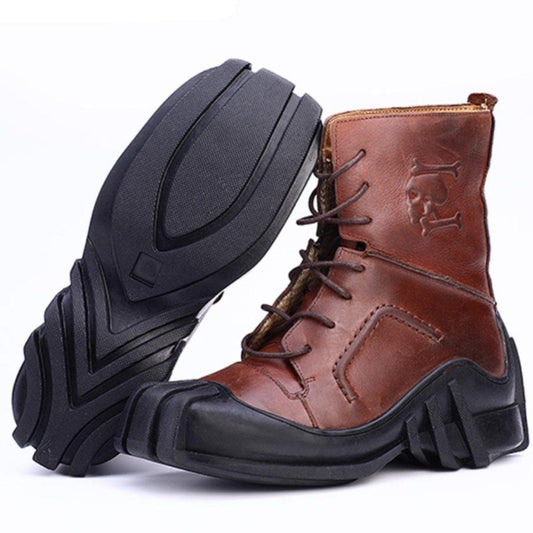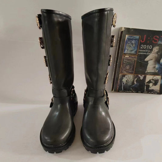 Men's Calf High Motorcycle Riding Boots with Skull Buckles