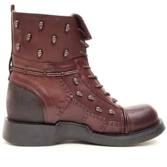 Handmade Skull Leather Boots + Free Leg Bag Bundle