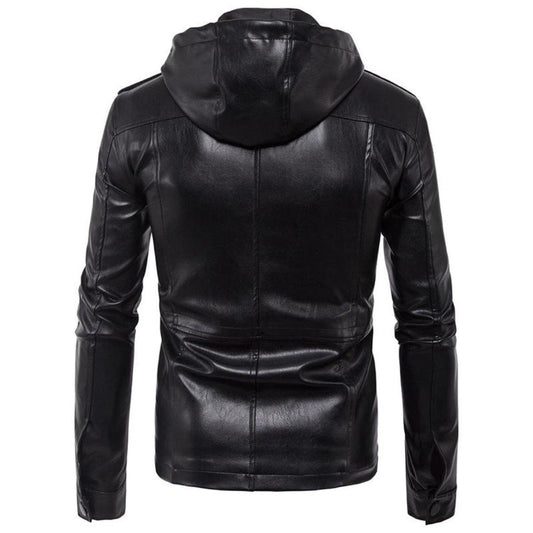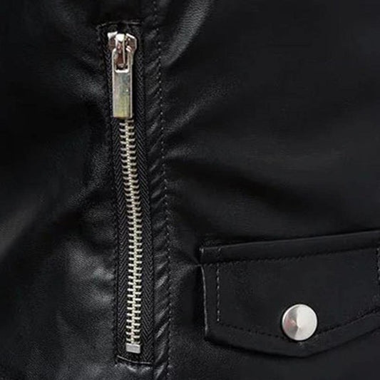 Turtleneck Motorcycle Black Faux Leather Jacket