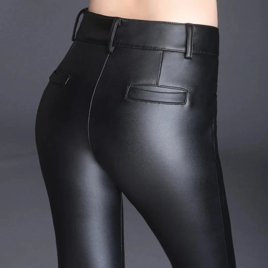 Women Leather Pants Elegant Skinny w/ Black PU Leather