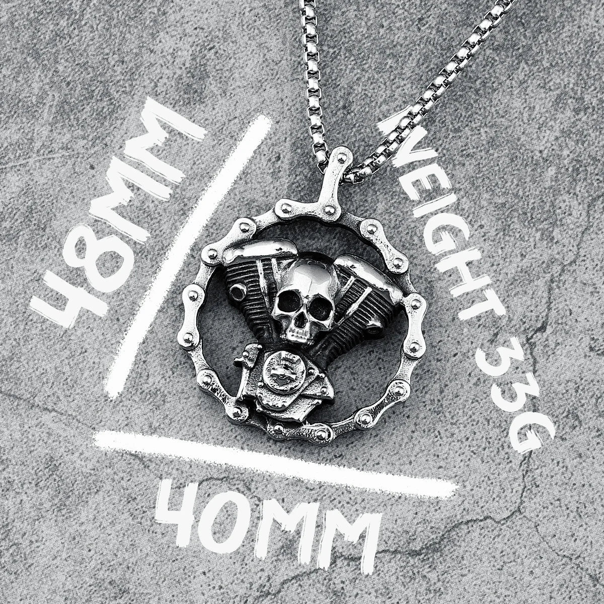 For the man who rides against the wind and lives life full throttle, the ALR™ Retro Skull Engine Necklace is the ultimate statement piece. Crafted from premium 316L stainless steel, this badass pendant blends the rugged spirit of a roaring engine with the edgy charm of a skeleton skull. Built for bikers, rockers, and rebels, this necklace is a bold nod to the brotherhood of the open road.