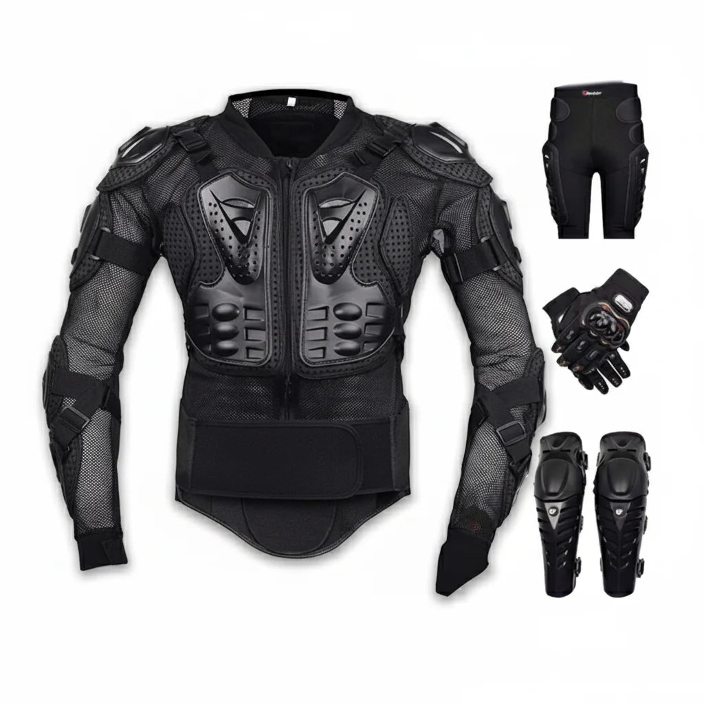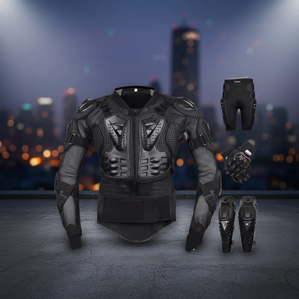 Absolutely! This isn't just armor; it's your ultimate riding companion. Engineered with reinforced padding across your chest, shoulders, arms, thighs, and knees, plus knuckle-protected gloves, you're wrapped in superior defense. The breathable mesh ensures comfort on every journey, while the sleek design keeps you looking sharp. Ride with confidence, knowing you're protected and turning heads.