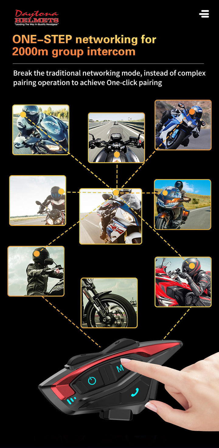 • One-Step Pairing, 1.2 Miles (2km) Distance Group Intercom.