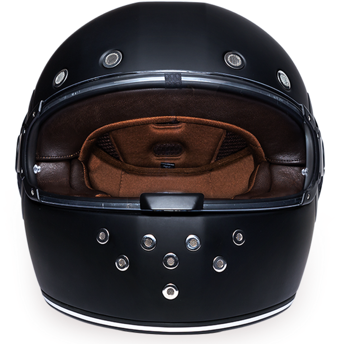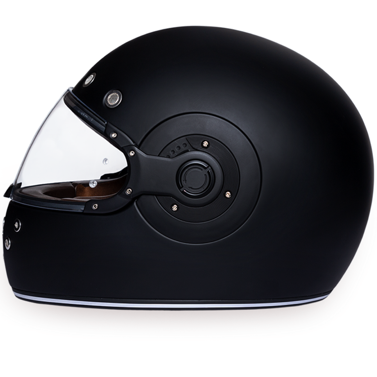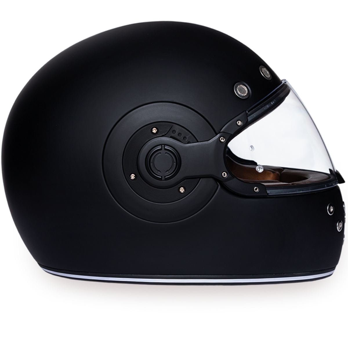 Our D.O.T. Daytona Retro Full Face Helmet In A Soft Touch Dull Black With Dull Black Accents, Meets And Exceeds D.O.T. FMVSS 218 Standards.  With 2 Different Shell Sizes, You're Sure to Get That Proportionate Fit!!  The Retro Has The Classic Vintage Look Of Yesterday.  Features A Vintage Outer Anti-Scratch Clear Shield With Pinlock 70-R Lens (Anti-Fog).  It also Has A Nylon Strap D-Ring Retention System, Chin And Forehead Ventilation, And A Removable, Hand Washable Interior (Moisture Wicking Fabric) With Premium Interior Leather Accents.  Free Head Wrap And Draw String Bag Included.  Sizes Range From XS-2XL.