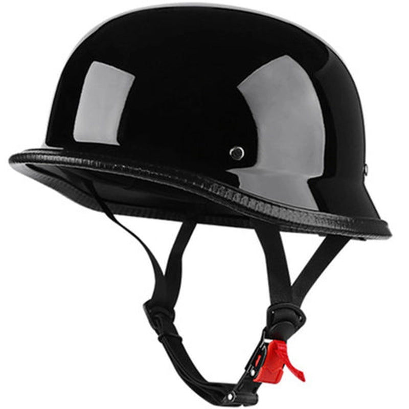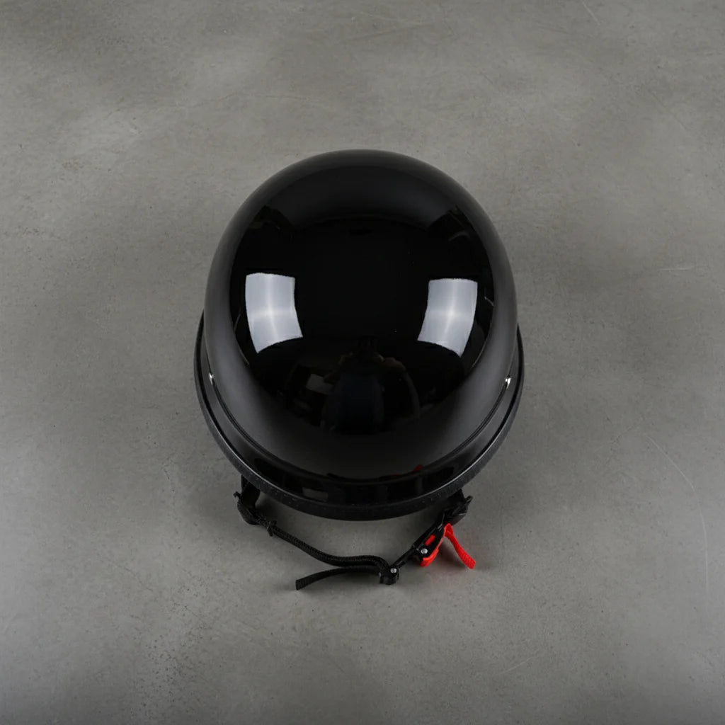 Ditch the boring. This half-helmet isn't just gear; it's a statement. Command attention with a sleek, glossy black finish and a vintage aesthetic that screams 'fearless biker.'
