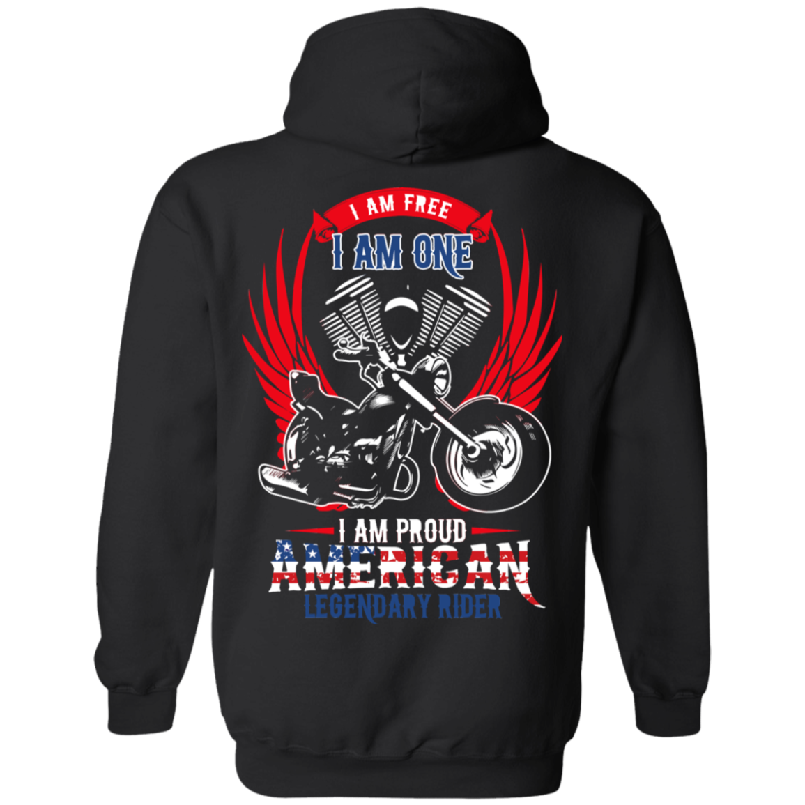 I Am Free, I Am One, I Am Proud American Legendary Rider Hoodie, Unisex, Cotton/Polyester, Black