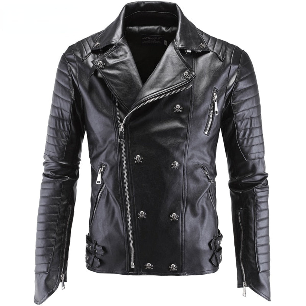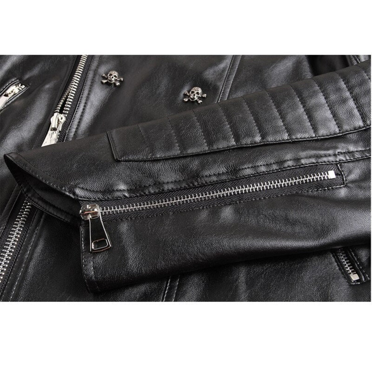 Introducing the Men's Skull Punk Style Faux Leather Jacket - the perfect addition to your wardrobe if you're looking for a unique and stylish outerwear option. Made from high-quality faux leather, this jacket is designed to offer you the perfect combination of comfort and durability.