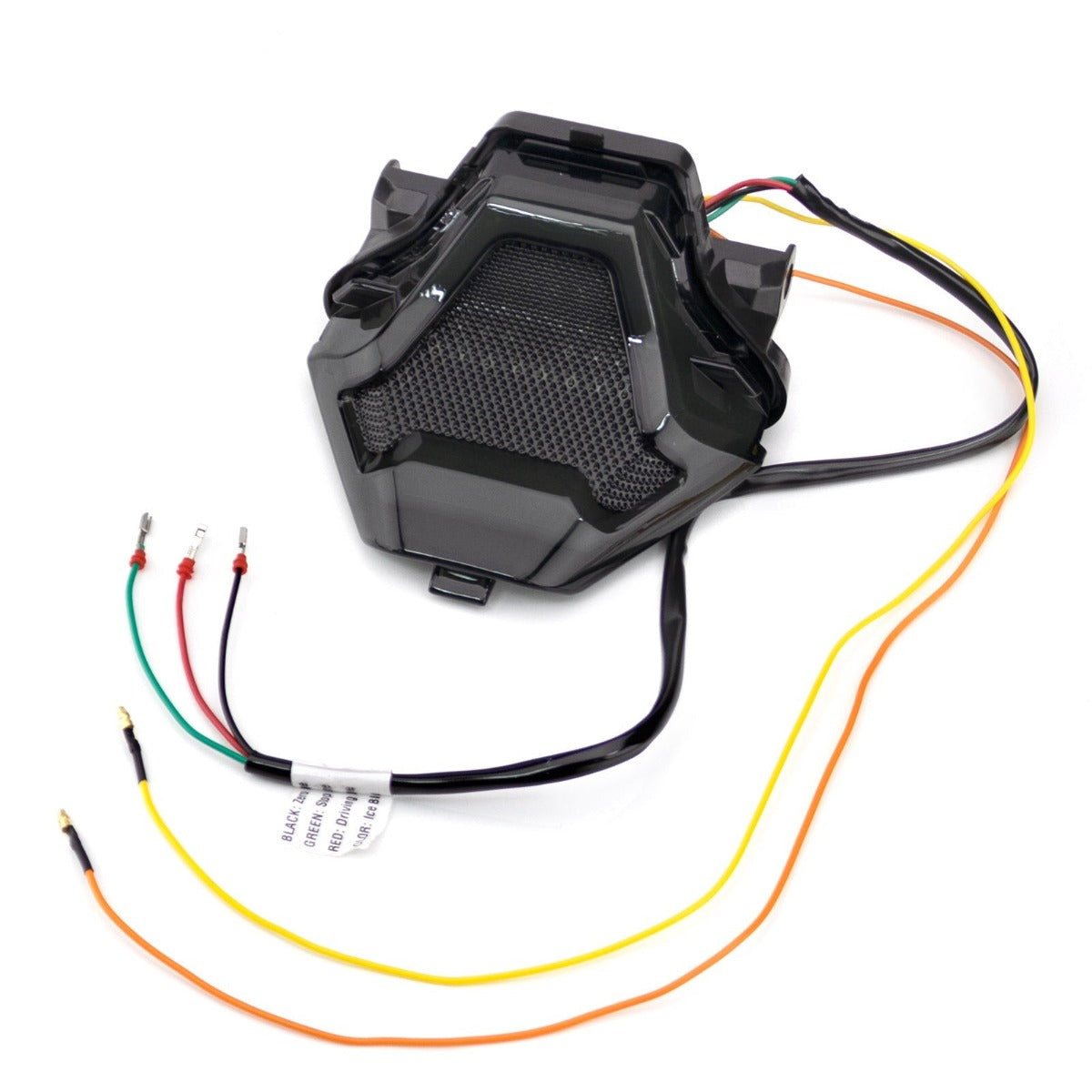 Enhance your Yamaha motorcycle's safety, visibility, and style with our Super Bright LED Motorcycle Brake Light Tail Lamp. This easy plug-and-play installation features built-in turn signals, providing bright illumination for both running/brake lights and turn signals. With its premium quality housing and UV-protected lens, this durable tail lamp is built to withstand the elements. Stand out on the road with sequential LEDs that flash in the direction you're turning, eliminating confusion. Upgrade your Yamaha's brake light and experience the dazzling color match with the driving light. Elevate your ride today with our high-quality tail lamp replacement.
