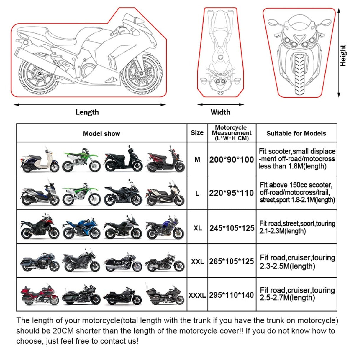 If you're looking for a reliable and attractive motorcycle cover, look no further than the Motorcycle Sun Protector Cover! This high-performance cover is made with 190T Polyester Taffeta materials for both indoor and outdoor use, making it ideal for summer or winter, as well as travel. It's also superior in water resistance and wind shelter, with taped seams and a front mark for easy removal. Plus, it comes in a variety of sizes to fit your motorcycle perfectly. Order yours today and be confident that your investment is protected!