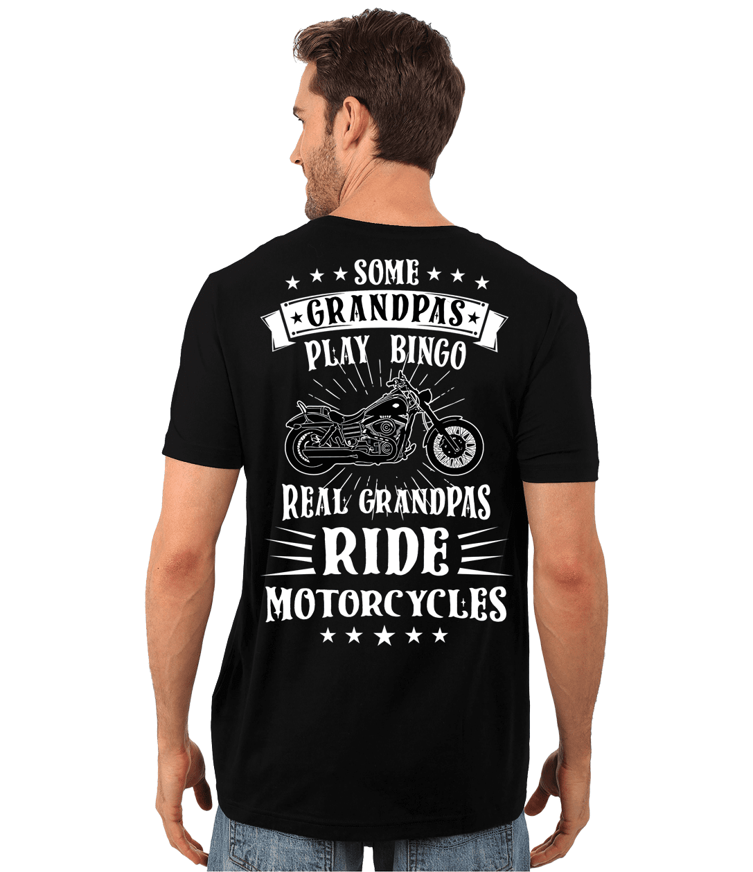Because of its cool design, casual style, and softness, you can wear this Real Grandpas Ride Motorcycles T-Shirt daily, showing the world what a proud grandpa you are. It comes in black, so you can easily combine it with every other biker outfit and accessories you own. Its cool print on the back, ‘Some Grandpas Play Bingo, Real Grandpas Ride Motorcycles,’ will surely turn heads everywhere you wear this t-shirt.