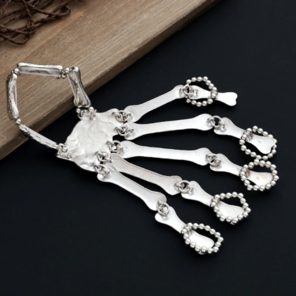 Are you looking for a bracelet to spice up your outfit, one that will give you a gothic and fantastic look at the same time? Then look no further because this Skeleton Bone Hand Bracelet will enable all of that. It wraps around your wrist and allows each of your fingers to be impressively decorated with stunning rings.