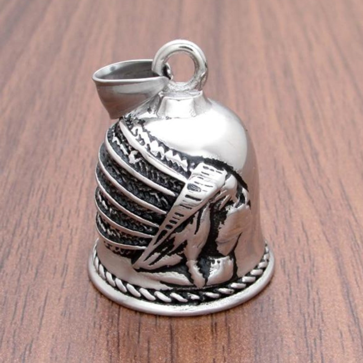 Stainless Steel Indian In Headdress Design Gremlin Bell Pendant