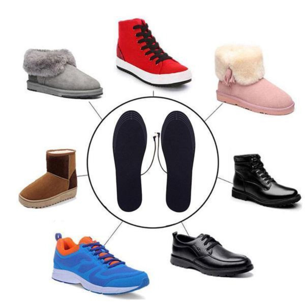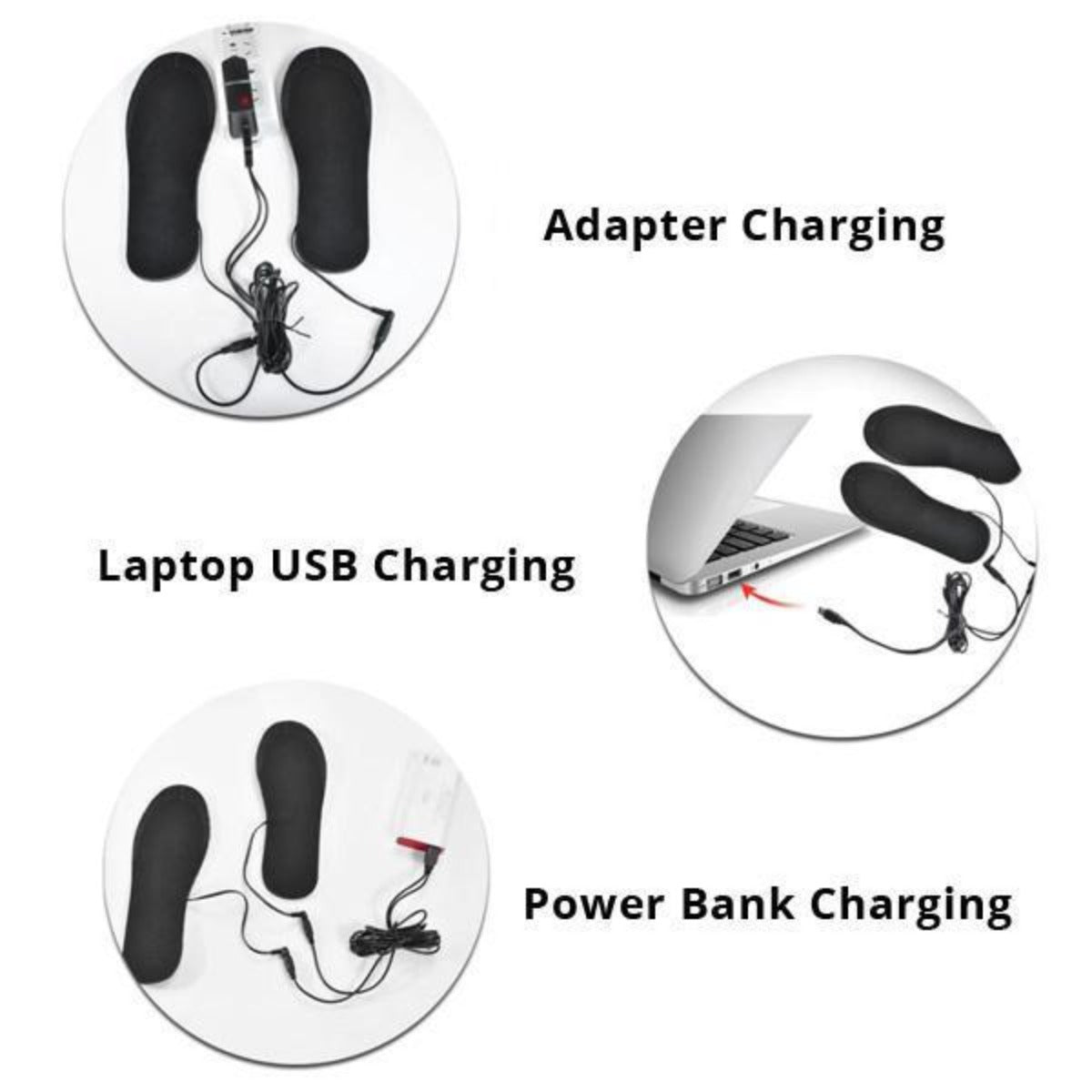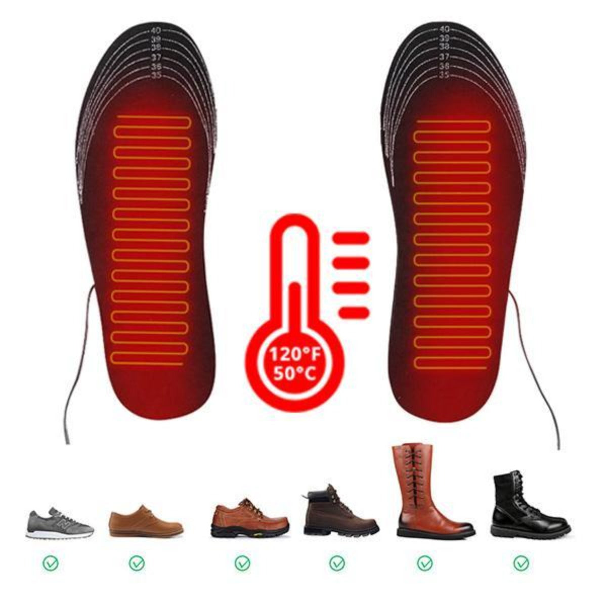 • Portable, rechargeable, and washable USB Heated Insoles Foot Warmer for any type of shoes.